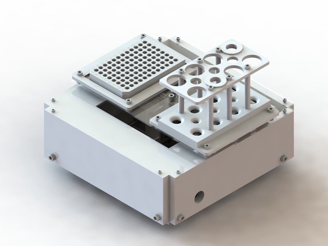 Our shaker table can be used for a variety of applications, including bioprocessing, cell cultures and optical fidelity. The table can accommodate various standard vessel sizes ranging from small microplates to large vials, all while providing precise control over the shaking patterns and speeds. Moreover, the shaker table can operate with three different patterns, which are linear, orbital, and double orbital, and is able to switch between each pattern at the customer’s discretion. Our device also comes with an intuitive user interface that allows for simple setup and operation, as well as a built-in optical density and fluorescent intensity measurement system for monitoring the state of each vessel on the shaker table.