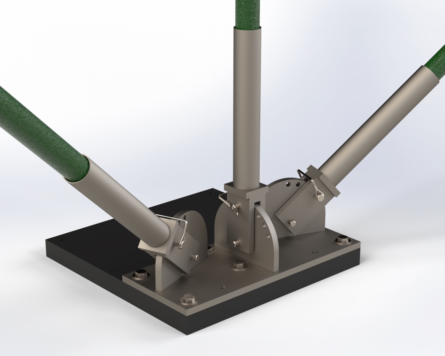 At CamoReady™, we aim to provide more. More efficiency, more speed, and most importantly, more safety. Our driving passion for the creation of our product is to deploy a camouflage cover effectively and rapidly over an army vehicle, creating the easiest and most intuitive user experience while minimizing soldier man-hours per deployment and costs per battalion. CamoReady™ is unique as it provides a solution to the most frustrating aspect of using the ULCANS system: securely and swiftly staking the extending poles in the ground. The Army often operates on uneven or very firm terrain, making this process arduous. If the poles cannot stay planted, the entire netting system is rendered inoperative. With CamoReady™, soldiers have a ready-made device to bypass all of this struggle. What further sets our product apart is its versatility to work with any land vehicle. CamoReady™ is designed to add weight and surface area to the poles’ ground interaction in order to increase stability and eliminate direct terrain planting, regardless of vehicle. Each sub-assembly of the full product contains sleeves for 3 poles. Using a setting pin, which soldiers intuitively move between pre-drilled holes, each sleeve can lock between 5 different locations, creating a bevy of angles that provide variability in shape and size for the deployed netting. With the poles inserted and locked, all that is left for the soldiers to do is unroll their folded ULCANS netting from the top of the truck, spread it over the poles, and proceed safely with their mission.