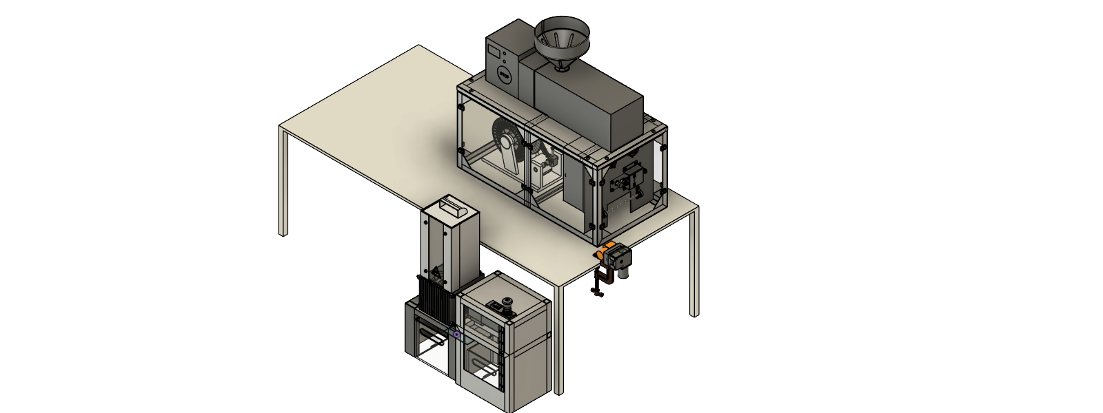 The objective of the EcoFilament Innovators is to design a cost effective 3-D printer filament recycling system modeled to address sustainability and economic challenges. The proposed ReVive Filament system comprises six distinct subsystems: a grinder, extruder, winder, pelletizer, housing, and diameter sensor zone each meticulously engineered to fulfill project and client requirements. Notably, the grinder facilitates the reduction of ABS, PETG, or PLA waste material from failed prints, prototypes, etc. into small particulates subsequently processed by the extruder to form filament. The major components of the extruder include a horizontal feed compression screw, three heaters, insulation, and a vertical feed nozzle. The extruder has three heating presets for extruding each material. The winder, equipped with real-time diameter measurement capabilities, automates the winding process onto a spool, enhancing operational efficiency. The pelletizer improves the final filament quality. Pelletizing the first extruded filament then feeding uniform pellets into the extruder enables the final recycled filament to achieve a more uniform diameter and consistency. The extruder, winder, and grinder subsystems embody innovative design principles aimed at ensuring safety, reliability, and efficiency. Noteworthy features include the compact layout and integration of electronics within the extruder, the diameter sensor zone with a spring-loaded tension roller to control the filament diameter, alongside the utilization of a self-reversing screw mechanism within the winder for precise filament guidance.