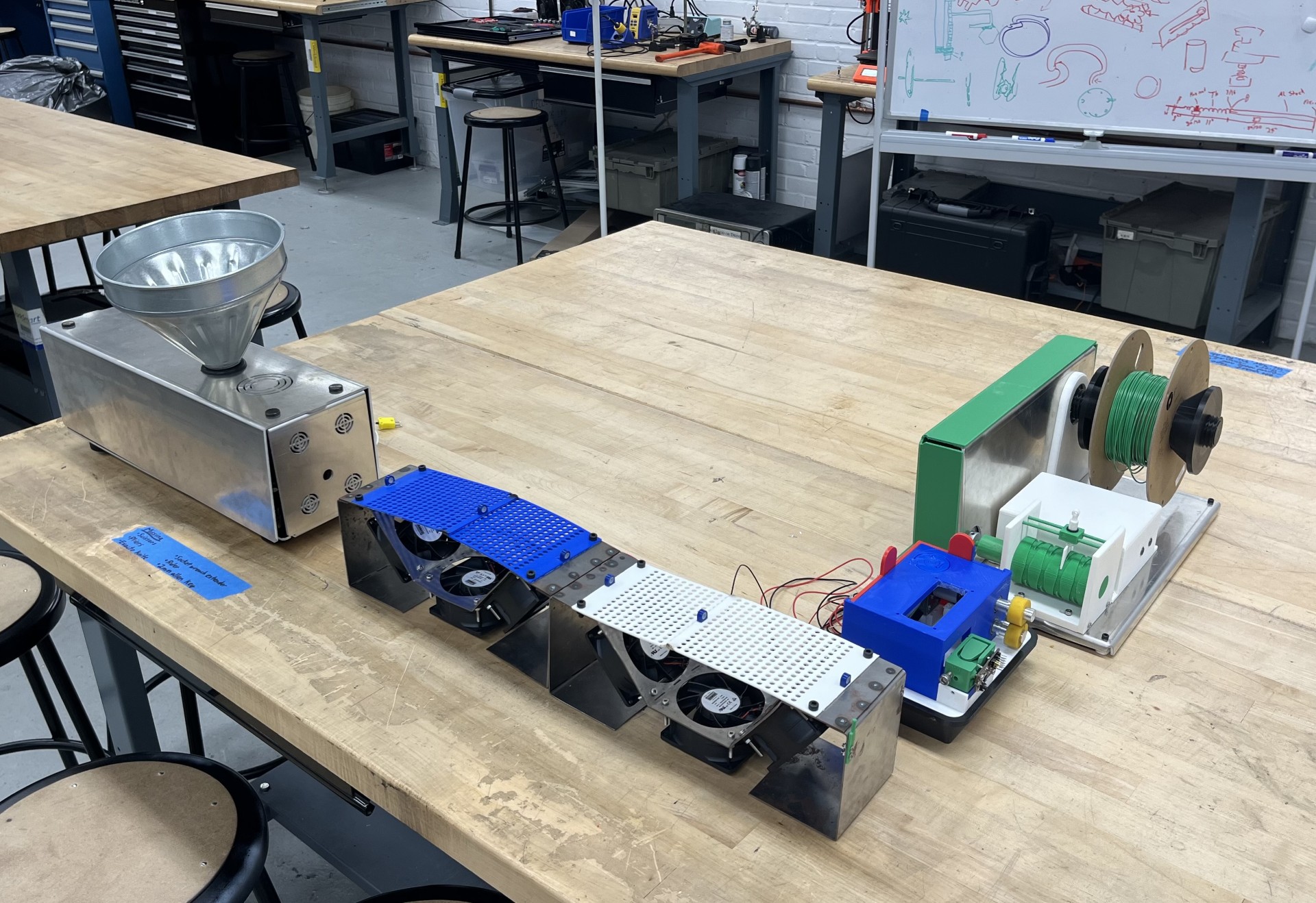 Additive manufacturing processes (e.g. 3D printing), while generating less waste than subtractive manufacturing, still produce enough debris to be considered environmentally harmful since this material cannot be recycled through normal means. This waste has been characterized as ‘3D Printer Poop’ in the popular media, branding additive manufacturers as serious polluters. To minimize 3D-printed waste, ReXtrude™ designed its 3D Filament Recycler! Current filament recyclers are expensive and slow. In response, ReXtrude™ created its fast, high quality, and affordable 3D Filament Recycler. In addition to being more economical than all our competitors, our recycler saves customers money by converting waste into reusable filament. First, the recycler reprocesses 3D print waste through its extruder subsystem. The material emerges as new, hot filament, which is fed through a cooling and real-time diameter sensing zone. ReXtrude™ leveraged expertise of non-Newtonian flow, thermal-fluids, mechanical design, and controls to produce the world’s fastest tabletop filament extruder with the most accurate cooling zone & diameter control system. The cooled filament is wound onto a spool for easy filament use on any standard 3D printer. No more waiting for Amazon to deliver that 3D printer filament! Customers can make their own filament instantly while building their reputation as eco-friendly 3D printing companies in addition to saving money and reducing waste.