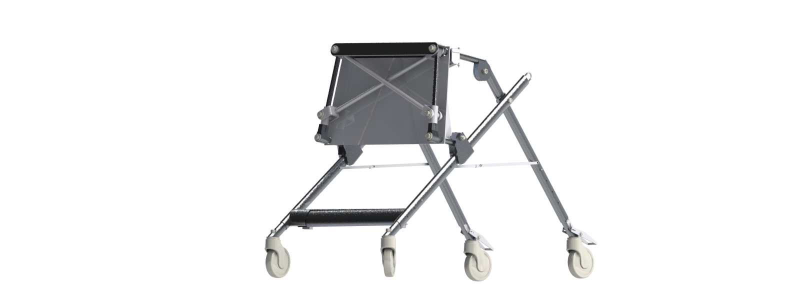 The Roll Models team was tasked with redesigning the standard rollator system to minimize the risk of falls, without using traditional hand brakes. The result is The Rede Rollator, a groundbreaking device offering two key innovations: complete 360° stability and an intuitive, three-position thumb-actuated brake system. These features ensure both unrestricted movement in tight spaces and a secure, comfortable grip. The Rede Rollator’s active fall prevention system is engineered to reduce injury. Upon detecting a fall, it transforms from an unstable prism into a stable pyramidal shape, which quickly increases lateral stability and keeps the user’s center of gravity within the wheelbase. This design helps prevent tipping and ensures that the rollator is always prepared to stop a fall by guiding the user to walk inside the structure. In the event of a fall, the rollator’s center support splits into two halves via servo motor-controlled pins, splaying outward for greater stability. The extended legs push the user away from obstacles, and once the user stands, the pins reinsert, restoring the rollator to its original state. If a user falls to one side, that side of the rollator will splay outward first, keeping the center of gravity within the wheelbase. Additionally, a scissor lift-like mechanism slows the fall. The rollator’s bottom struts can be folded down for compact transport. Unlike traditional cable brakes, which can be difficult for older adults with limited hand strength, the Rede Rollator uses a scroll-wheel brake system. This innovative design incorporates a return spring rotary potentiometer to control the brake pads, offering three settings: locked, unlocked, and variable braking adjustment. The rollator also features four points of contact with the user—two handles and two harness attachment points— promoting correct posture.