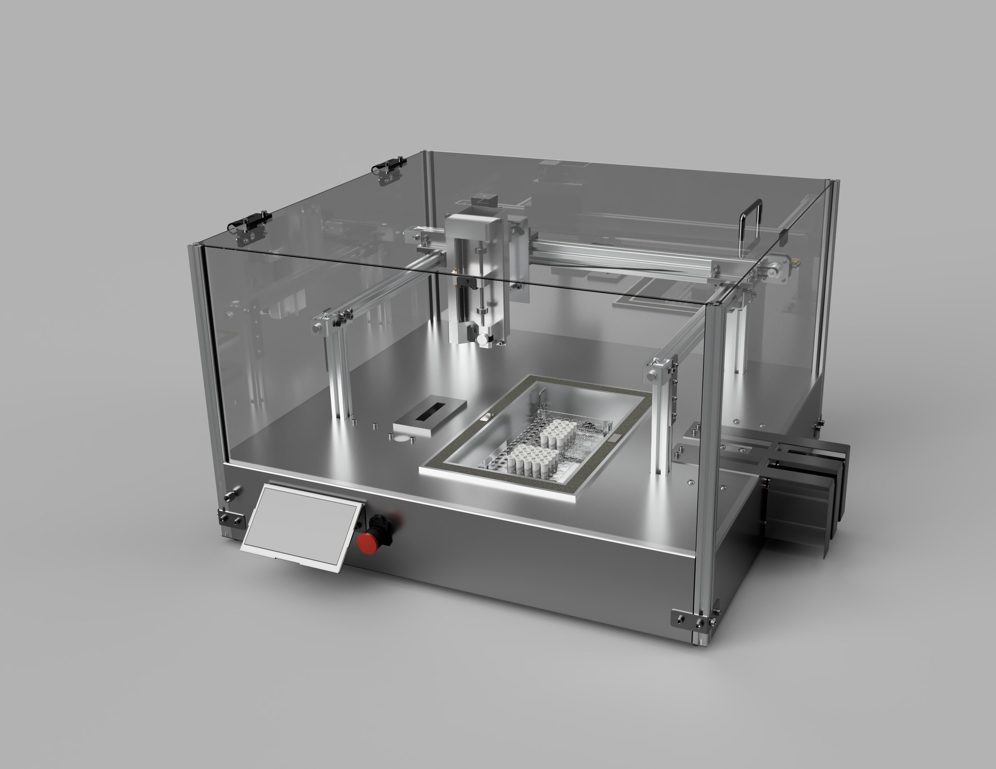 The goal of this project was to design an open-source, affordable autosampler. It must be able to store and control the temperature of many samples, be capable of cleaning the sampling mechanism and any lines than come in contact with samples, complete a sampling and cleaning cycle in under 1 minute, have an interface for a user to control the sampling procedure, have a housing and emergency stop for user safety, and be powered by a standard American 120 VAC outlet. The final device is comprised of four subsystems. The electrical subsystem consists of all electrical components, including controls for the other subsystems and a user interface where users input sampling settings and control sampling procedures. The motion and structural subsystem consist of the housing around the autosampler and the sampling mechanism, which carries the syringe pump using 3D printer-like motion with stepper motors, bearings, and a sturdy frame. The heating and cooling subsystem includes the storage box where the samples are housed and the heating and cooling units that control the sample temperature by heating or cooling air in ducts attached to the storage and using fans to run the heated/cooled air over the samples. The injection port and cleaning subsystem is a combination of two subsystems. The injection port seals around the needle as the syringe pump pushes the fluid through the line that connects to the analytical device. The cleaning trough uses running water to clean the inside and outside of the syringe and supplies water for the sampling mechanism to use to flush the injection port and its lines for the next sampling cycle.