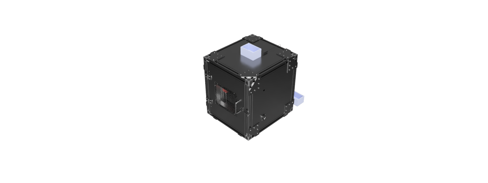 P3 was tasked with developing an autosampler for Dr. Jing Pan of the University of Florida. The main objectives of the team were to create a compact, maintainable, and precise system without reaching the high price point of other market competitors. The body of the sampler is composed of a frame and bolted-on panels. Most panels are removable, allowing for ample access into the system for repairs and maintenance. In addition, the panels contain a layer of insulation, lessening the heat loss through the housing and increasing efficiency. Samples are moved from the vials with a syringe system attached to a Core-XY gantry. Three different interchangeable syringes are available for the system, keeping sampling errors low and minimizing sampling time to under 1.5 seconds for all sample possibilities. The thermal system is driven by four Peltier plates and two fans. These plates have a much smaller footprint than a traditional refrigeration system, contributing to the smaller overall footprint of the machine. Two plates are dedicated to cooling, and two to heating. In addition, fans are constantly circulating air through the system to encourage convention and prevent temperature gradients. The fluids system is designed to give precise control over the sample behavior without sacrificing sampling time. A second syringe is plumbed to the clean water tank to provide 290 kPa of pressure to the system and rapidly push samples through. This syringe also can flush large volumes of clean water through the system, achieving three full flushes in roughly 12 seconds. A needle valve is located directly upstream of the microfluidic device, metering the volumetric flow rate to what was specified by the user. Multiple check valves and a five-micron filter are also located in the system to prevent contamination.