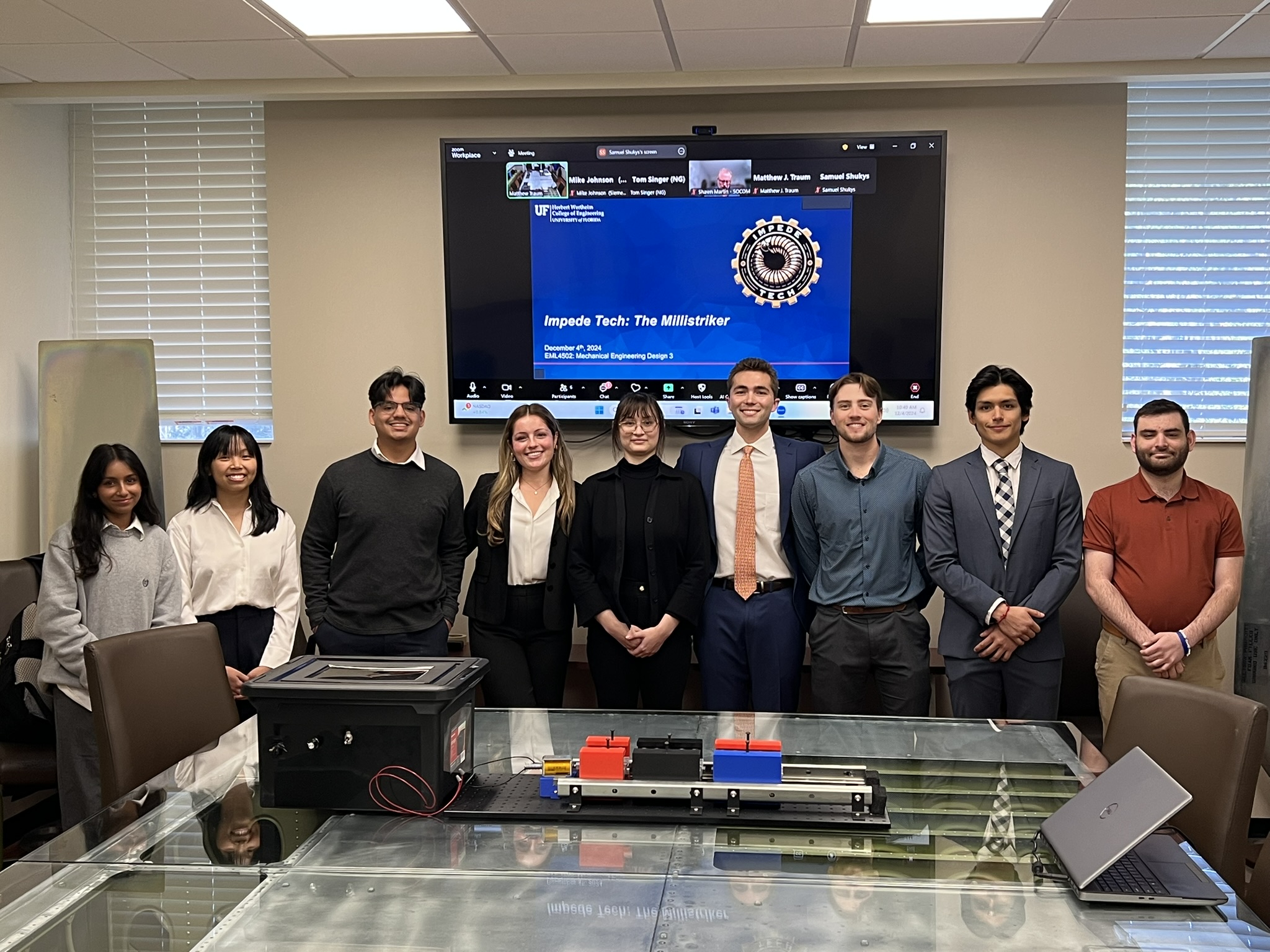 The MilliStrikerTM from Impede TechTM is a simple and effective dynamic material testing apparatus, capable of testing at intermediate strain rates. It is designed to fill a critical gap in material testing technology that has otherwise been occupied by a costly alternative, the Split-Hopkinson Pressure Bar. Utilizing a compact design under one meter long, adjustable bar clamps, and an efficient solenoid launcher capable of a wide velocity range, the MilliStrikerTM delivers an elegant solution for all laboratories with impact testing needs. The MilliStrikerTM aims to set a global standard that is recognized by industries where precise material response data is essential – including aerospace, defense, manufacturing, and automotive. Research and development facilities worldwide can safely rely on Impede TechTM to provide equipment that produces accurate and reliable data. Sponsored by the Department of Mechanical and Aerospace Engineering at the University of Florida, this product stands out among others within the dynamic material testing field for its dedication to setting a global standard, while remaining economically sustainable.