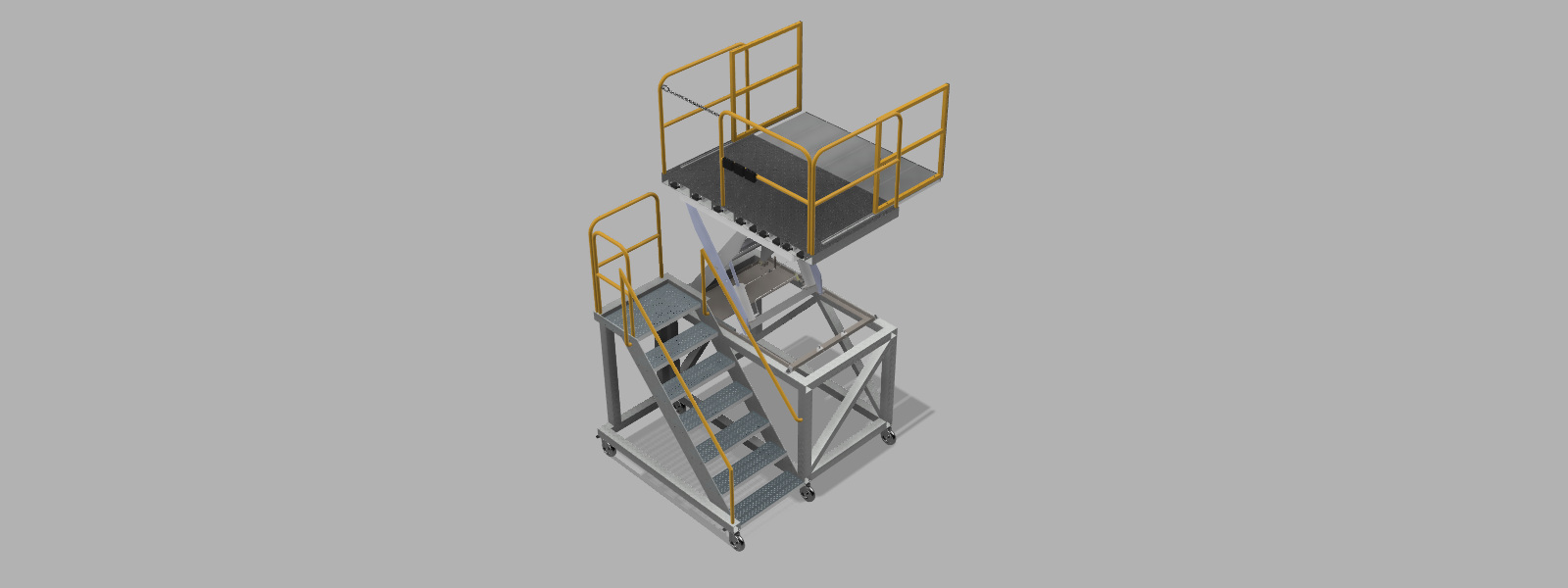 Due to burgeoning safety concerns regarding existing maintenance operations, HAECO, an aviation MRO contractor, requested the design of a maintenance platform to address key operational needs of aircraft technicians. Current procedures require maintenance work be performed on jack-elevated aircraft, with critical tasks including engine removal and installation at working heights above six feet. As a result, technicians are required to work from ladders or directly on engine cradles, significantly increasing the risk of fall and injury due to limited working space and unstable footing. To address these challenges, team AERO completed the design of a robust maintenance platform, focusing on overall stability, mobility, height adjustability, and worker safety, while also ensuring compatibility with A319/A320 aircraft. The platform features a galvanized steel frame supported by six total locking caster wheels, providing for secure, straightforward positioning. Additionally, a fixed height staircase with custom guardrails is incorporated for ease of access to the working platform. Key platform safety features include steel diamond plating to provide traction, guardrails on all three sides, and a chain-link gate to ensure complete enclosure while in use. To extend the product practicality and accommodate technician needs, a hydraulic scissor lift is integrated with the base, providing an adjustable working height between six and ten feet. Lastly, the platform features an extendable portion composed of six independent, extendable aluminum beams, which translate via linear actuator controls. The extendable platform elongates up to thirty inches to precisely contour the aircraft engine, offering technicians a larger, more secure working area during critical operations. Overall, the completed design offers a versatile, ergonomic, and safety-focused solution that allows technicians to perform their work more efficiently and securely.